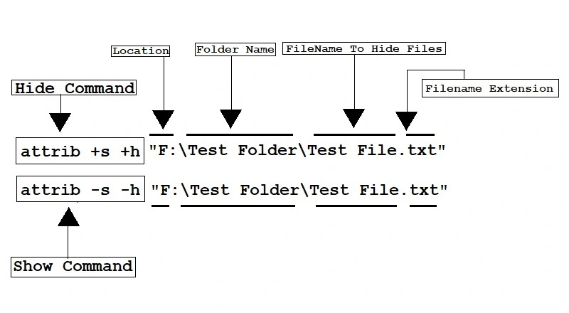 attrib +s +h F:\Test Folder/Test File.txt